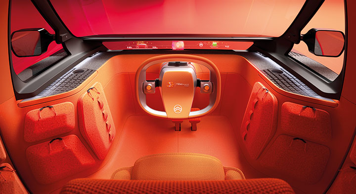 Руль оснащен двумя джойстиками, которые обеспечивают доступ ко всем функциям цифровой приборной панели и управление ими. Стенки салона снабжены отсеками для хранения. Выдвижные лотки, оснащенные подстаканниками, позволяют также хранить телефоны, наушники, фонарики или прочую полезную мелочь.