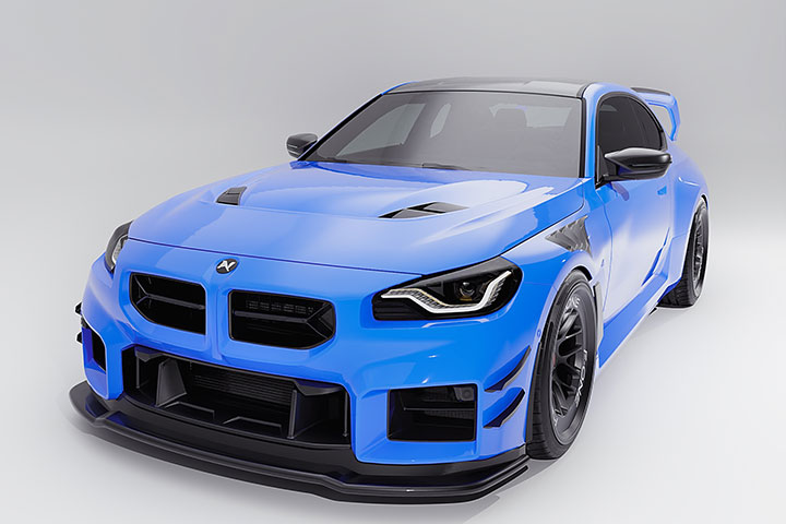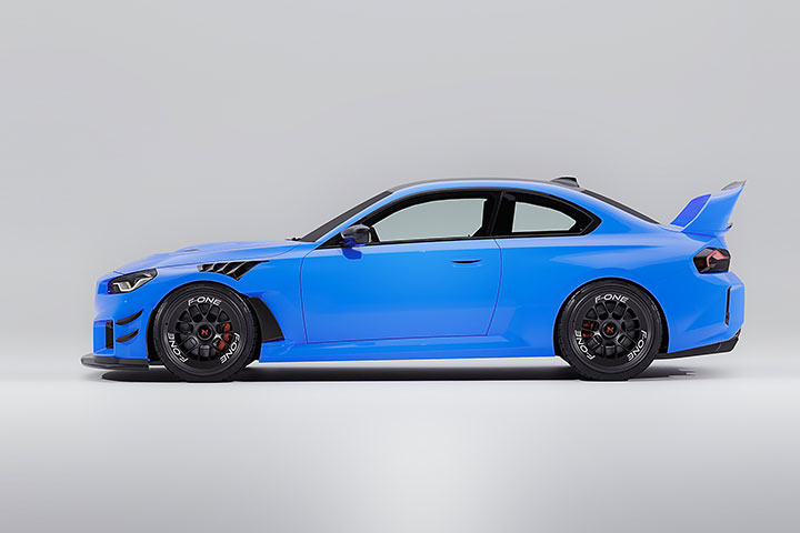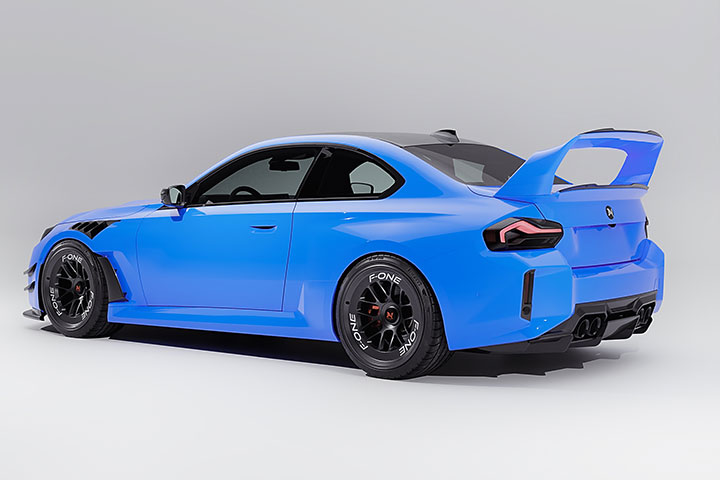 Благодаря двум дополнительным воздухозаборникам карбоновый капот улучшает тепловой режим в моторном отсеке. Для внешних зеркал предложены аэродинамические карбоновые корпуса. Сзади с воздушным потоком работает карбоновый диффузор и большое регулируемое карбоновое антикрыло. Эту деталь можно увидеть на желтом M2. Синяя модель, в свою очередь, оснащена спойлером Alpha-N Class 3 в версии Corse, приподнятым с помощью проставок в сочетании с двумя закрылками Gurney. Днище кузова было аэродинамически улучшено благодаря накладкам из углеродного волокна.